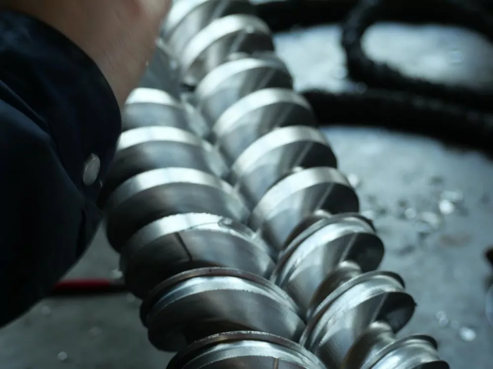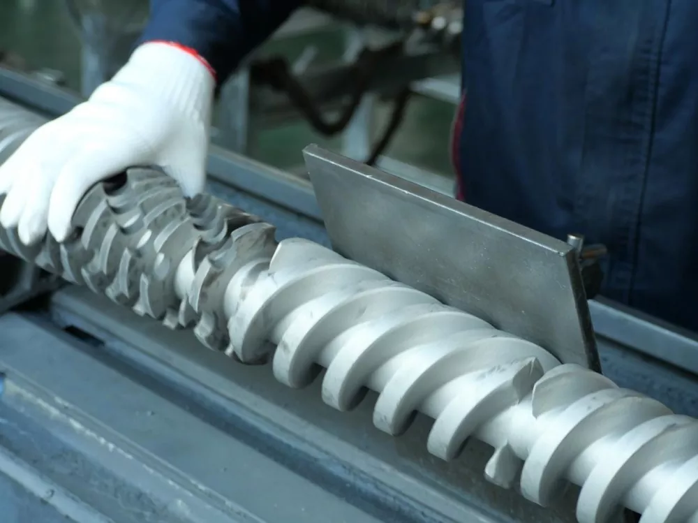 A selezzione di materiale hè ancu cruciale. I nostri viti sò fatti di acciau in lega nitruratu 38CrMoALA di alta qualità. Questu hè sottumessu à un trattamentu di quenching è nitrurazione di sette ghjorni, risultatu in una strata nitrurata di 0,50-0,70 mm di spessore è una durezza di a superficia HV950-1050. Queste proprietà di u materiale assicuranu una eccellente resistenza à l'usura ancu à a temperatura di circa 200 ° C, allargendu a vita di serviziu di a vite di almenu un quinto cumparatu cù i prudutti cunvinziunali. Questu impedisce l'accumulazione di materiale in i cantoni morti per via di l'usura di a superficia annantu à l'usu prolongatu.